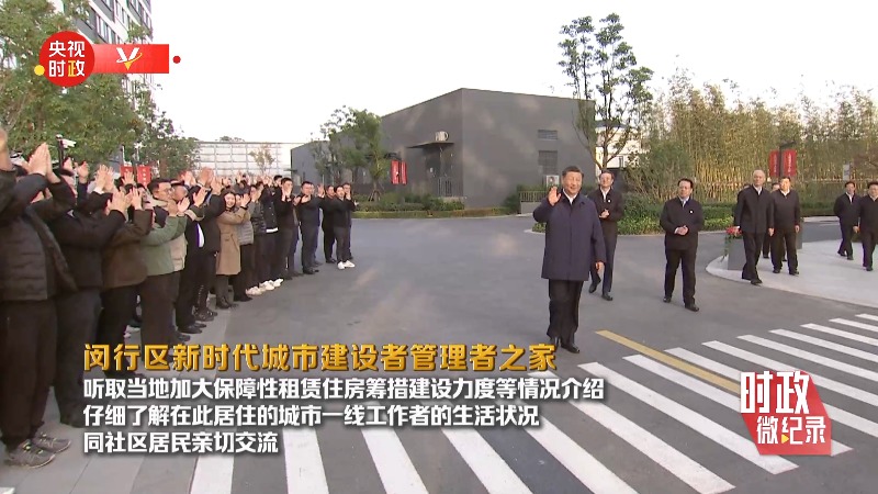 当天下午,习近平来到闵行区新时代城市建设者管理者之家考察,听取当地加大保障性租赁住房筹措建设力度等情况介绍,仔细了解在此居住的城市一线工作者的生活状况,同社区居民亲切交流。